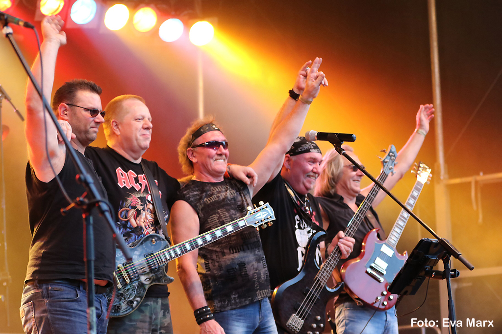 The five-piece band with a classic lineup (vocals, drums, bass, and two guitars) has already shown off their skills at a bunch of events. All musicians have extensive live and studio experience and always ensure a rousing atmosphere and professional entertainment at their events. In addition to many well-known classics from the repertoire of Saxon, ZZ Top, Judas Priest, and other hard and heavy greats, their skillful interpretations of numerous AC/DC songs are particularly popular with audiences. Last but not least, the band's success is largely due to their truly authentic sound, the technical skills of the individual musicians, and the singer's distinctive voice, reminiscent of a mix between Bon Scott and Brian Johnson. LAST REBEL bring AC/DC to the stage with a sound and voice close to the original. Loud, unadorned, and as close to the real thing as you can expect live.